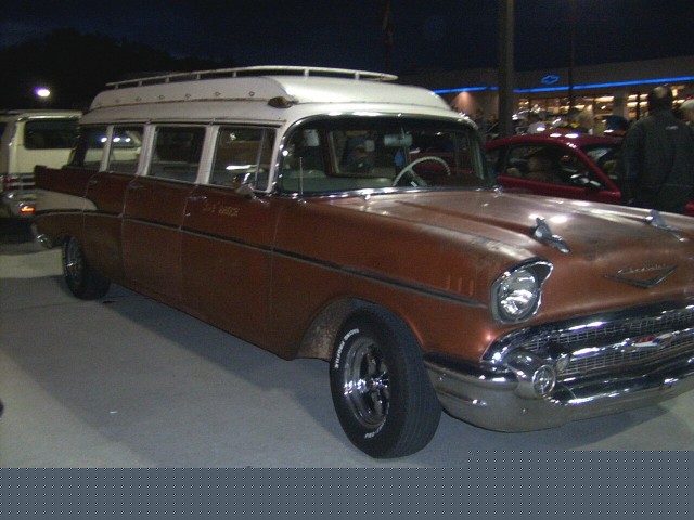I took my car to the biggest cruise-in in the area yesterday. There were 250 to 300 cars there. About 8 o'clock a very interesting 57 Chevy wagon pulled in. It needs to be restored but it drew lots of attention. Check to picture out.