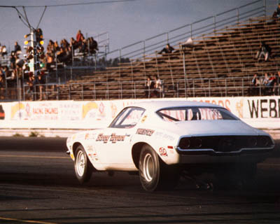 We started with the supossed rumors, and found out that they were true! Sonny Bryant did actually own this car(Dad bought it for him)and he raced it locally. Sonny Bryant is known for his crankshafts and engine work these days, though he did campaign a pro stocker in the early 70's. Notice the blacked out rear panel...big block??