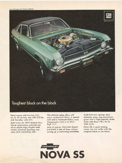 Marlin 70 Yenko Nova-350/360, 4speed M21, 4.10 Posi (Daddy's Ride) 69 SS Nova-396/375hp, 4speed M20, 3.55 Posi (Benjamin's Ride) 67 RS Camaro-327/250hp, 2speed Glide, & 3.08 Open (Danny's Ride) |