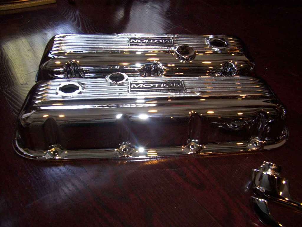 Those valve covers look great. I have the same covers with the long cut emblems on them.I have the motion invoice for the covers & my covers are not chromed.Why were some covers CHROMED & some covers NOT CHROMED? Jeff