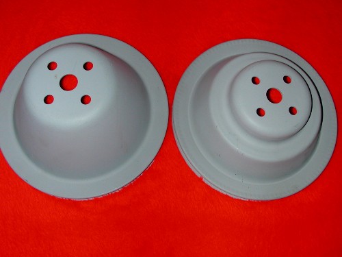 The second looks identical to the deep groove pulley on my 67 292 chevy truck.I cannot get at one right now to measure but it seems too deep for a 67/68 application. Take care Joe |