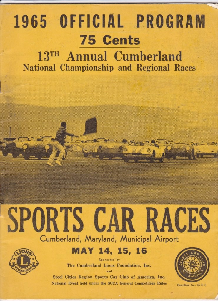 Going through some old papers, I ran across a "1965 Official Program" for the Cumberland Maryland races.