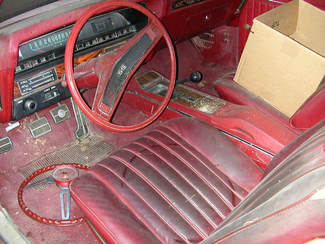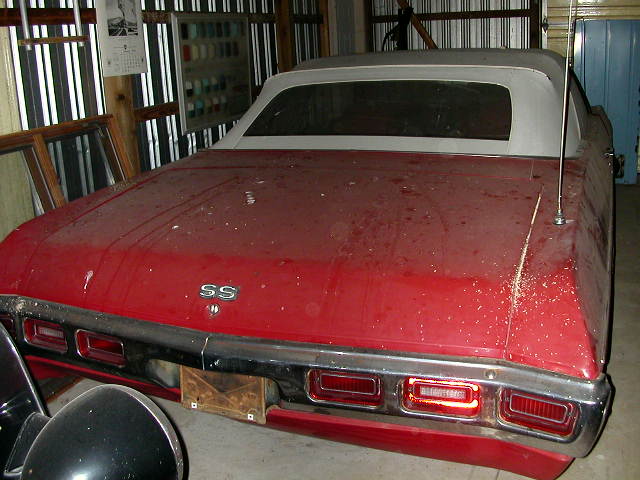 Here are a few pics of a 69 SS427 Impala, red on red with white top, 4-speed, needs qtrs. and right front fender for sure. What do you guys think this car is worth as is and restored?