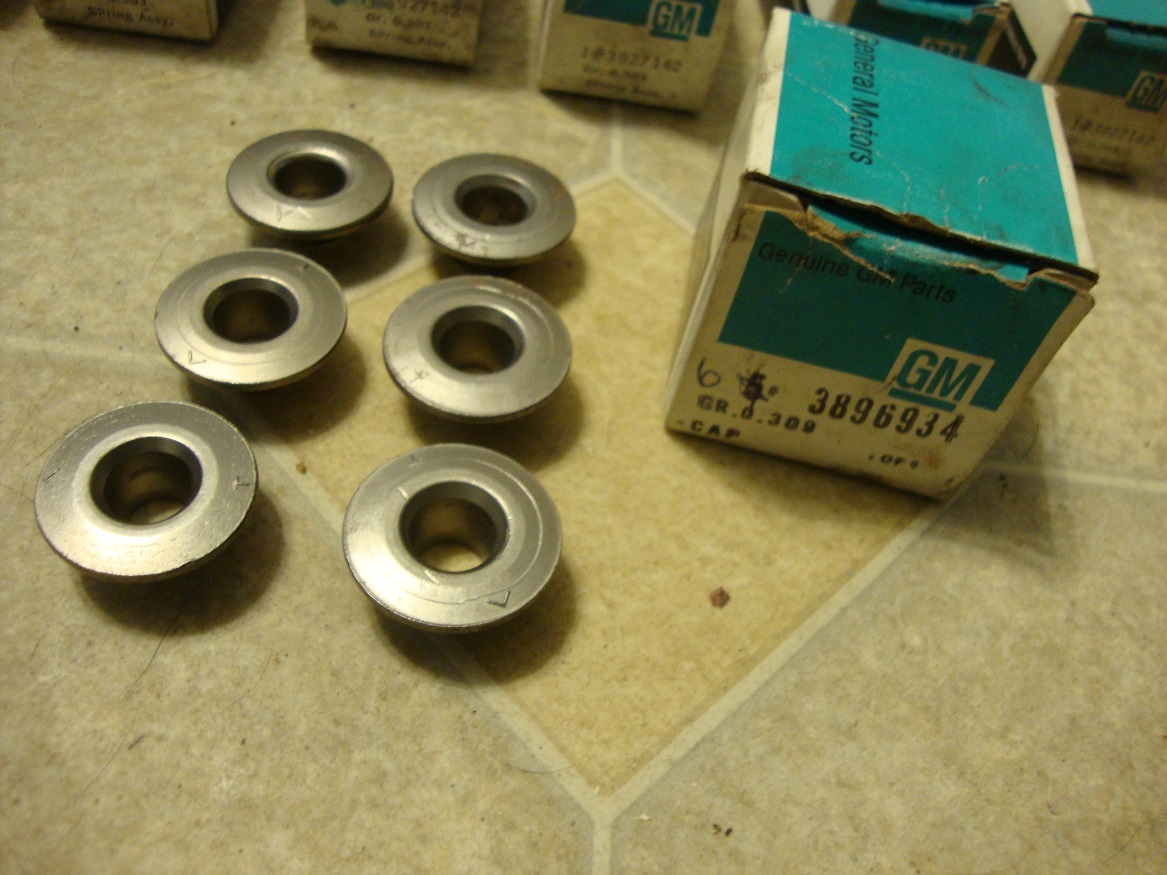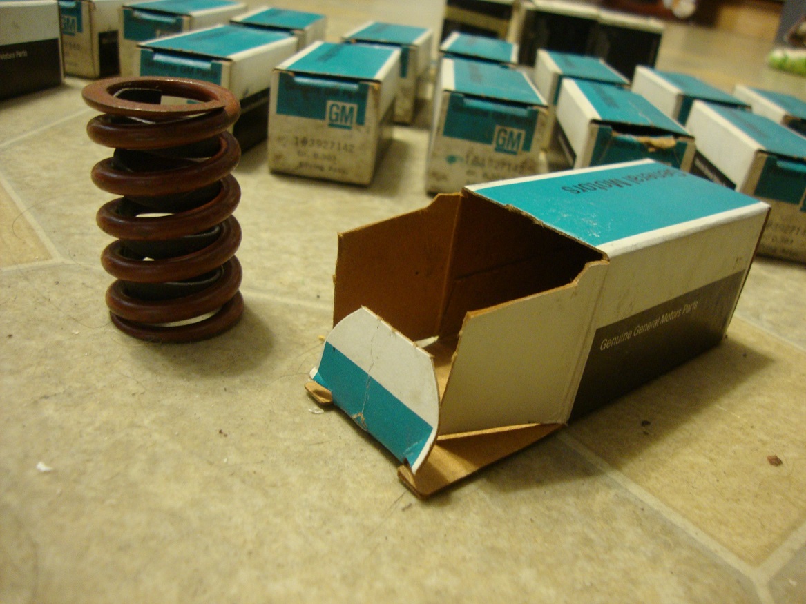 Complete NOS GM Z28 cam valve spring set. Red in color. 3927142 complete set of 16. Also comes with complete set of NOS GM 3896934 retainers (16) and NOS GM keepers 3947770 (complete set + extra). $550 shipped for everything.