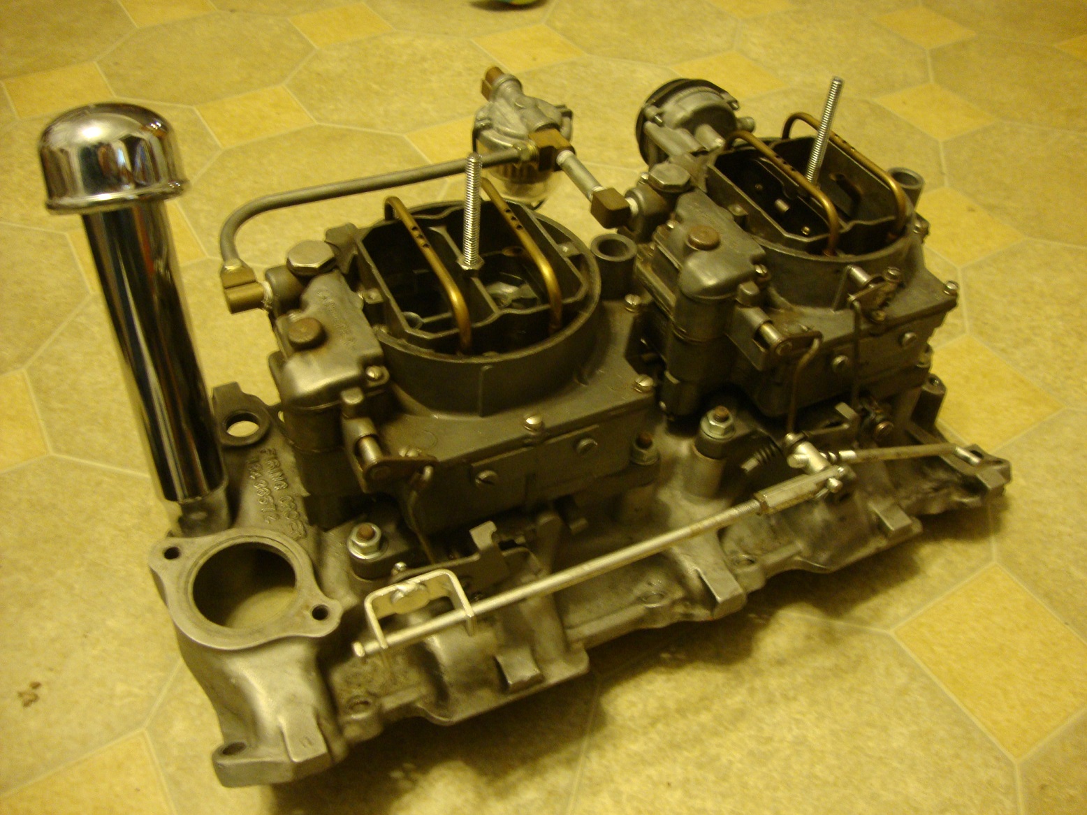 Original 1957-1961 Corvette 283-245hp dual quad setup. Was freshened up in the 1990's and used for a short while and then put into storage. Complete and correct original carburetors. Fuel lines are wrong but will do the job. Intake is nice and has never been welded on or repaired. No corrosion around the coolant areas. Comes with a matched set of reproduction Paragon air cleaners. Won't find a nicer setup for the money. $2500.