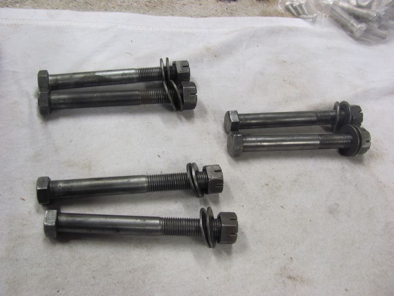 Motor mount to frame stand through bolts for non locking mounts. Fits Camaros, Chevelles, Novas, Corvettes and other GM cars. These are fine thread 7/16-20 with special sized washers and mardsan nuts. Used up till mid 69 on many applications. 1 set includes 2 bolts 4 washers and 2 nuts.