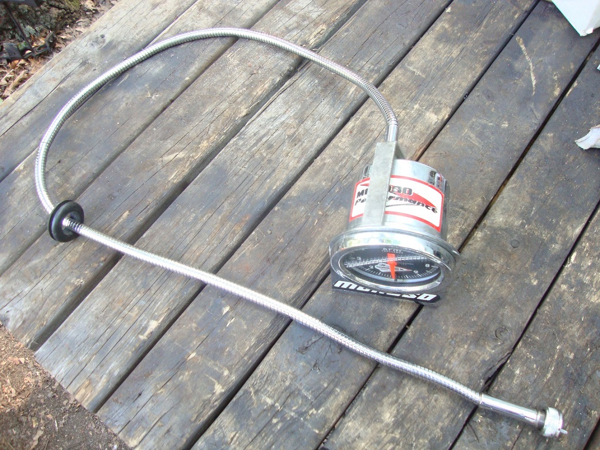 Here's my Jones Motorola Moroso Tachometer complete with chrome cable and chrome bracket assembly.