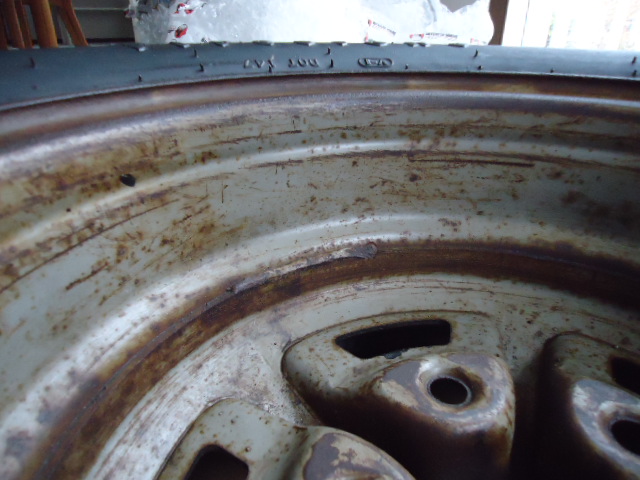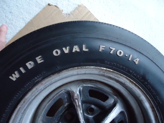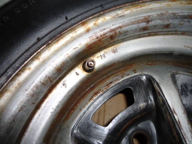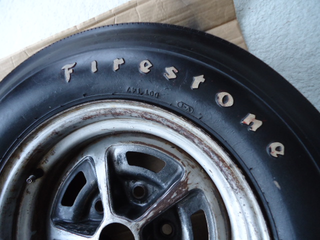 Original 47 year old 14" spare tire,still holding it's old Magnum 500 SS YA rim with original paint.