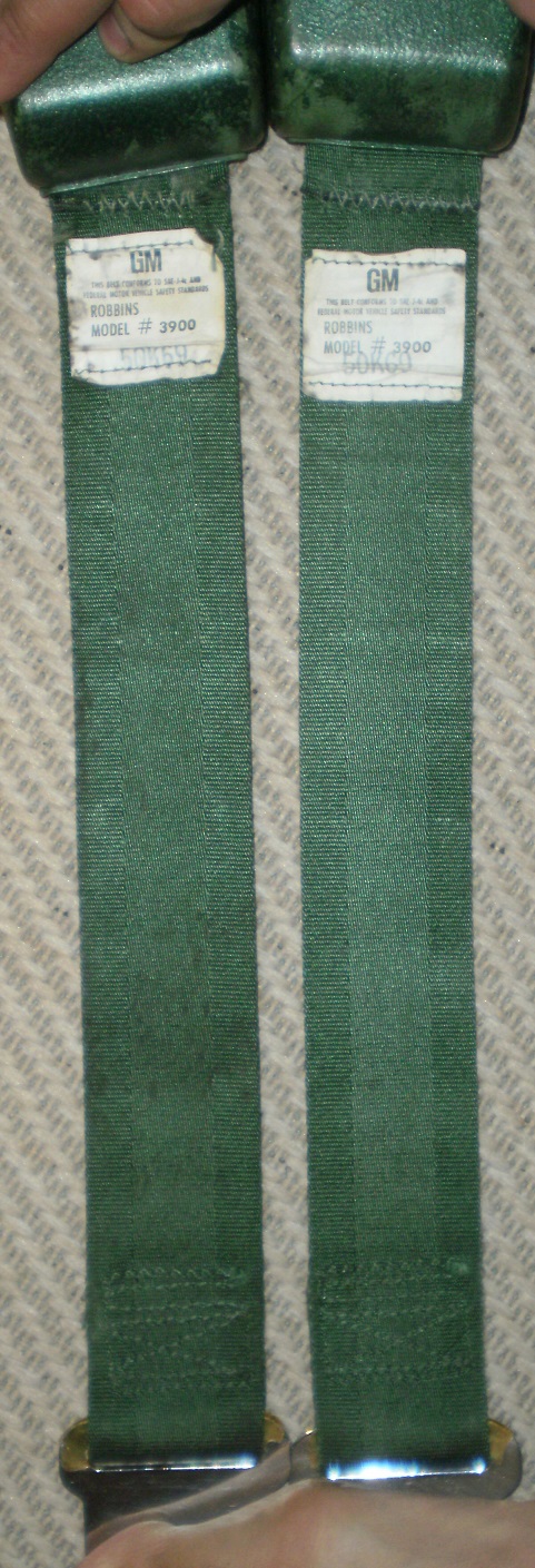 Dated 50-69 which is the 50th week of 1969. As you can see by the photos the covers will need a re-spray, Retractors work perfectly. Tongue metal ends and seat belts are nice. View all the clear photos and judge the condition for yourself. These were removed from a 1970 Chevelle but may fit other 1970 GM Models. $250 with FREE Shipping to lower 48 States. Paypal "Gift or Friends & Family" Payment required within 24 hours after "I Will Take It" is mentioned.