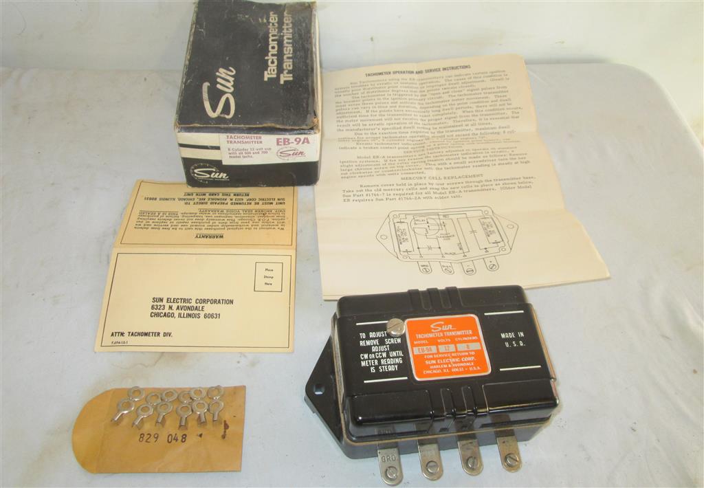 I have a bunch of New Old Stock Sun tachometers, housings, and a EB-9A Transmitter for 8 cylinder, 12 volt applications. All parts are listed individually on Ebay with a $9.99 starting price and NO RESERVE. All auctions end tonight at 7PM Pacific Time. Thee prices are currently super low and there could certainly be some deals. Free shipping to paid members in the US. International buyers will get the shipping discounted by subtracting the US shipping price from the international cost.