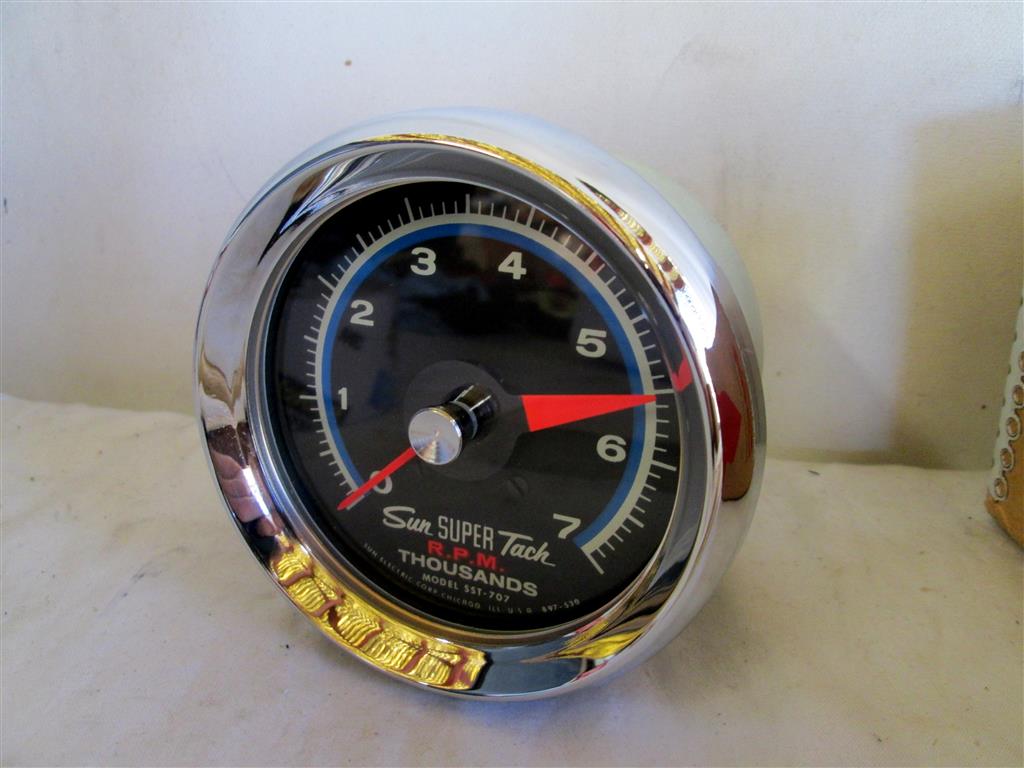 Here are links to the listings: NOS Sun RC-70 7,000 RPM Tachometer 1961 Impala Factory Option: https://www.ebay.com/itm/352224484138 NOS Sun RC-70 7,000 RPM Tachometer Very Rare Greenline Face https://www.ebay.com/itm/352224486754 NOS Sun SST-707 7,000 RPM Super Tach New In Box REAL DEAL 60s https://www.ebay.com/itm/372154731185 NOS Sun SST-70 7,000 RPM Super Tach Very Rare Greenline Face REAL DEAL 1960's https://www.ebay.com/itm/352224495274 NOS Sun TC-1 Black Tachometer Housing/Mounting Cup Complete New In Box https://www.ebay.com/itm/352224482680 Vintage NOS SUN EB-9A Tachometer Transmitter 8 Cyl 12V OEM 61-62 Chevy Impala https://www.ebay.com/itm/372154719155 New Old Stock SUN NC-5 Chrome Tachometer Housing Super Tach Cup 60s-70s https://www.ebay.com/itm/372154725263 New Old Stock SUN NB-3 Chrome Tachometer Housing OEM GM 61-62 Impala "Pinch Cup" https://www.ebay.com/itm/372154721826 Thanks and good luck bidding, Jason |