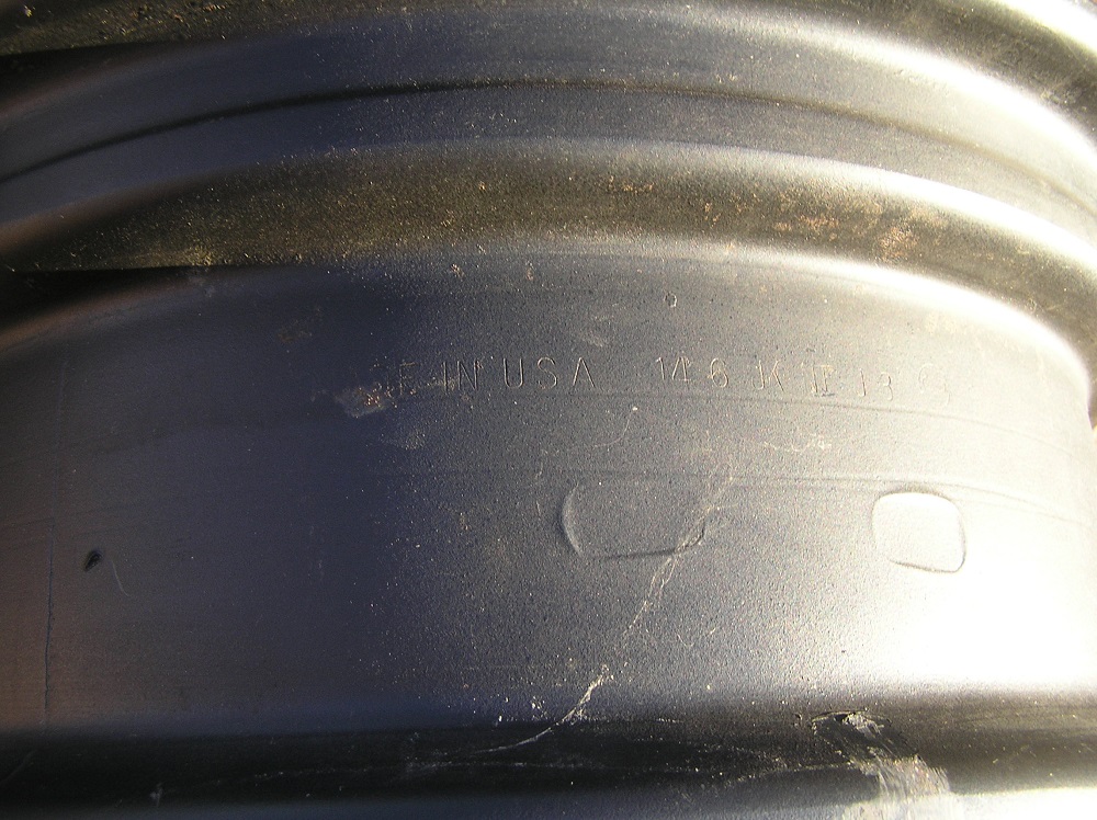 FYI, There are date codes on the Norris Wheels. The numbers stamped into the outer flat part of the rim where the hubcaps clips onto are the date codes. I can see number stamped on the flat outer part on each wheel, however I cannot see the entire number clearly. Mike |
