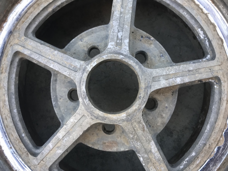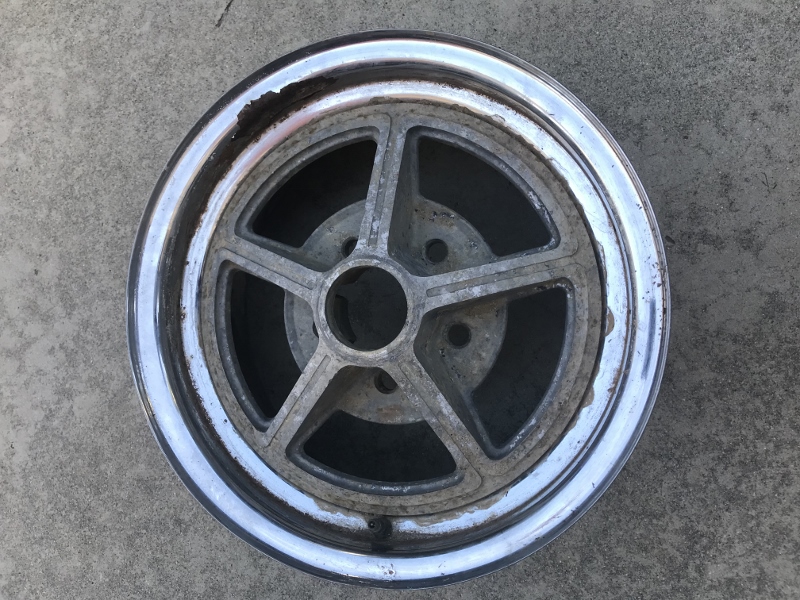 Hi Everyone, I have a very rough but REAL Kelsey Hayes part number KH-70612 14x6 Magstar - the aluminum center riveted with chrome outer hoop. Ford bolt pattern 5 on 4.5 - 5 on 4 1/2
