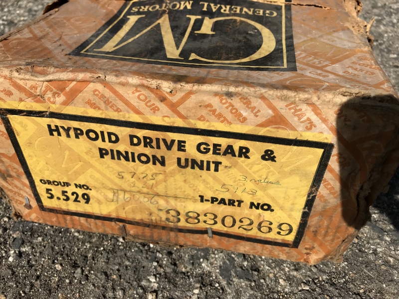 The NOS box is from the replacement 5.13 gears that were put in the car back in the day, what I have here are the (USED) original take out 4.56 gears from the car. This is how they've been stored for more than fifty years! 9 / 41 They are: 3720089 ring dated 10 61 3720090 pinion dated 9 61 I only have 8 of the original bolts but will include them. $150 shipped to the 48 PM with questions, thanks sYc. Anthony |