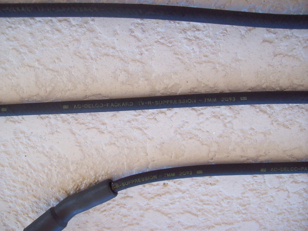 This is a bargain for the guy thats not into numbers matching date codes. A set of Black 7 MM Big Block AC Delco Spark Plug Wires Dated 2Q93 from the Second Quarter of 1993 in Yellow Script with stock looking end boots, I'll throw in the "Like New" Black Distributor cap. Coming off the same 1970 Chevelle SS 396 that I got a lot of parts from with low miles and owner told me car was running just fine before he went to a Pro Touring set up.