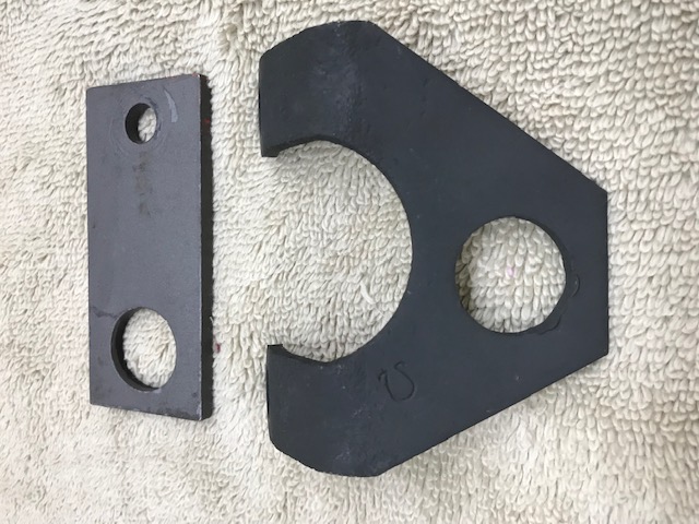 Two pairs of lift brackets for a big block complete with the assembly line "omega" stamp on front hook.