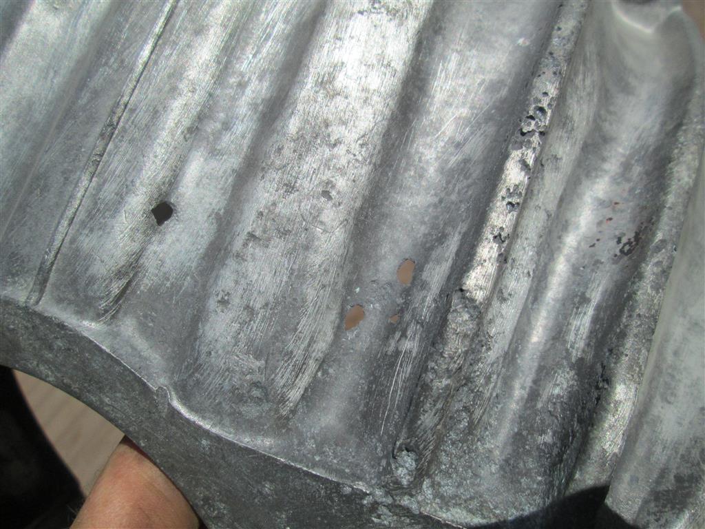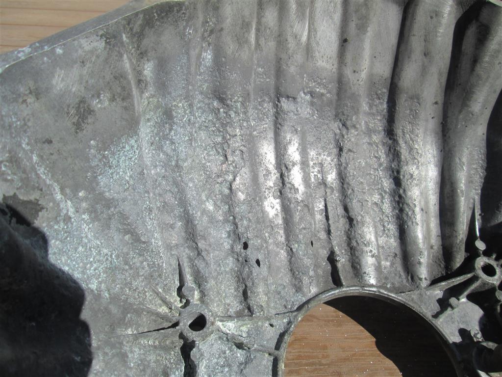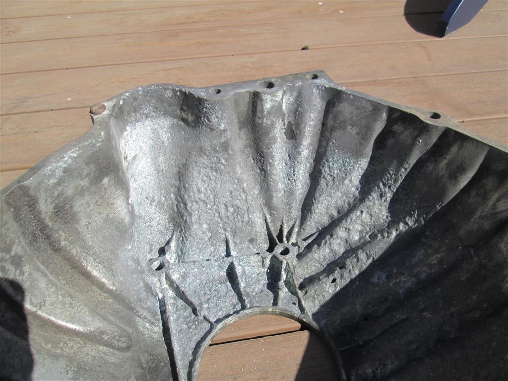 This bellhousing is free of cracks and all threads are in good shape. It still rings like a bell. Unfortunately, it was poorly stored and has heavy, heavy pitting on the inside, which goes all the way through to the outside in isolated areas. It still looks nice from the outside. Someone with a tig welder could probably make short work of filling in the pits from the inside. $100 Thanks, Jason |