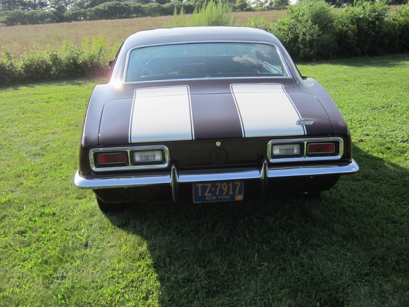 1968 Camaro Z28 - Factory Dated Cross-ram with correct 4210 Holley carbs. Factory headers. Frame-off Restoration. Always in heated climate controlled garage. Engine, transmission, rear all rebuilt. Has off-road cam. Solid original body. Interior original except for carpet and recovered front seats. Rare Cordovan Maroon paint.