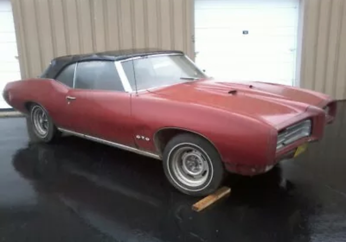 Apparently a PHS documented numbers matching drive train GTO convertible wearing its original matador red paint with red buckets & console, black power top and a 3 speed saginaw stick. Car was bought new by original owner at Van Schleedorn Pontiac in Menominee, WI with the dealer sticker still on trunk lid.