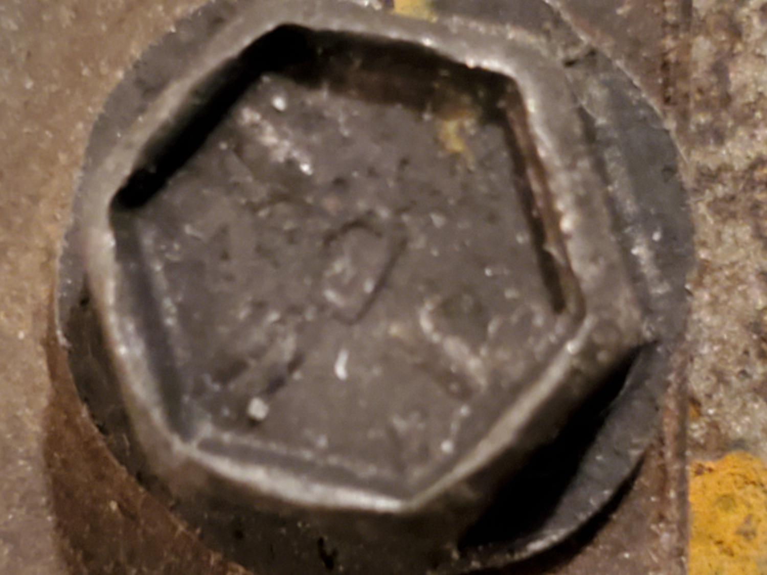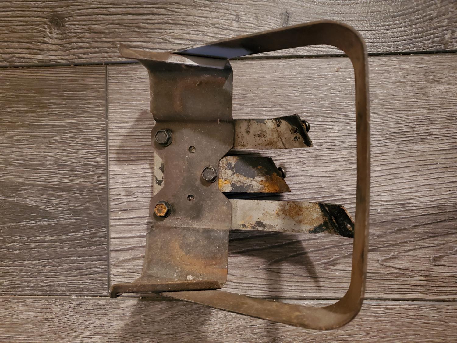 I glass beaded a small section to view the factory stamping where both metal overlap / meet (Last picture). The bracket assembly is in good condition and will need to be restored / detailed. The bracket still retained the original black plastic caps that are always missing. The 3/8 head markings are "D". Missing one of the Phillips screw.
