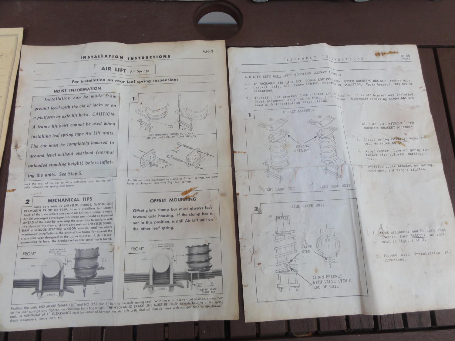Vintage Nos Air lift Traction Performance for leaf springs. Complete set with attaching Hardware & instructions an extra set of Bag brackets are included. 300.00 Plus shipping