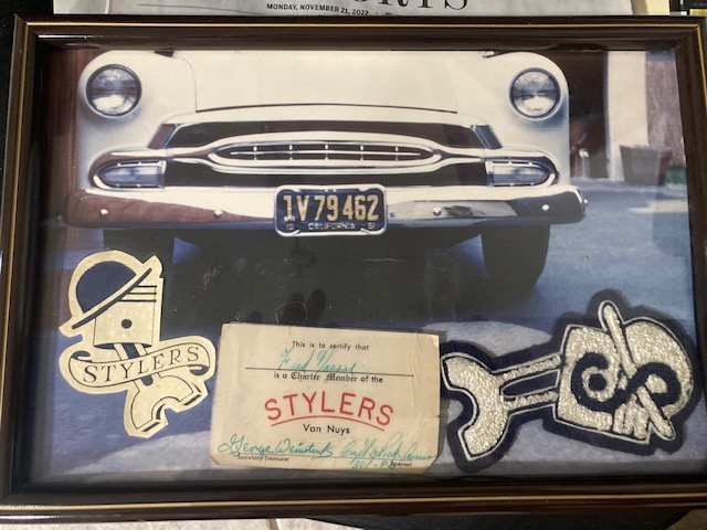 I am selling this Stylers Car Club photos, membership. patch and sticker all framed. It was from the estate of Fredrick Nasser on the membership card. The proceeds will go to the (TFF) Tucson Fire Foundation a 501C . You can Google them online or Facebook. The money is for the health and welfare for retired first responders. I am a volunteer and we clean out estates that are donated to there cause. They have a sale 3 days a month. I am asking 100 FF shipped to lower 48 USA. A receipt can be provide for tax purposes if requested. Thanks, Larry