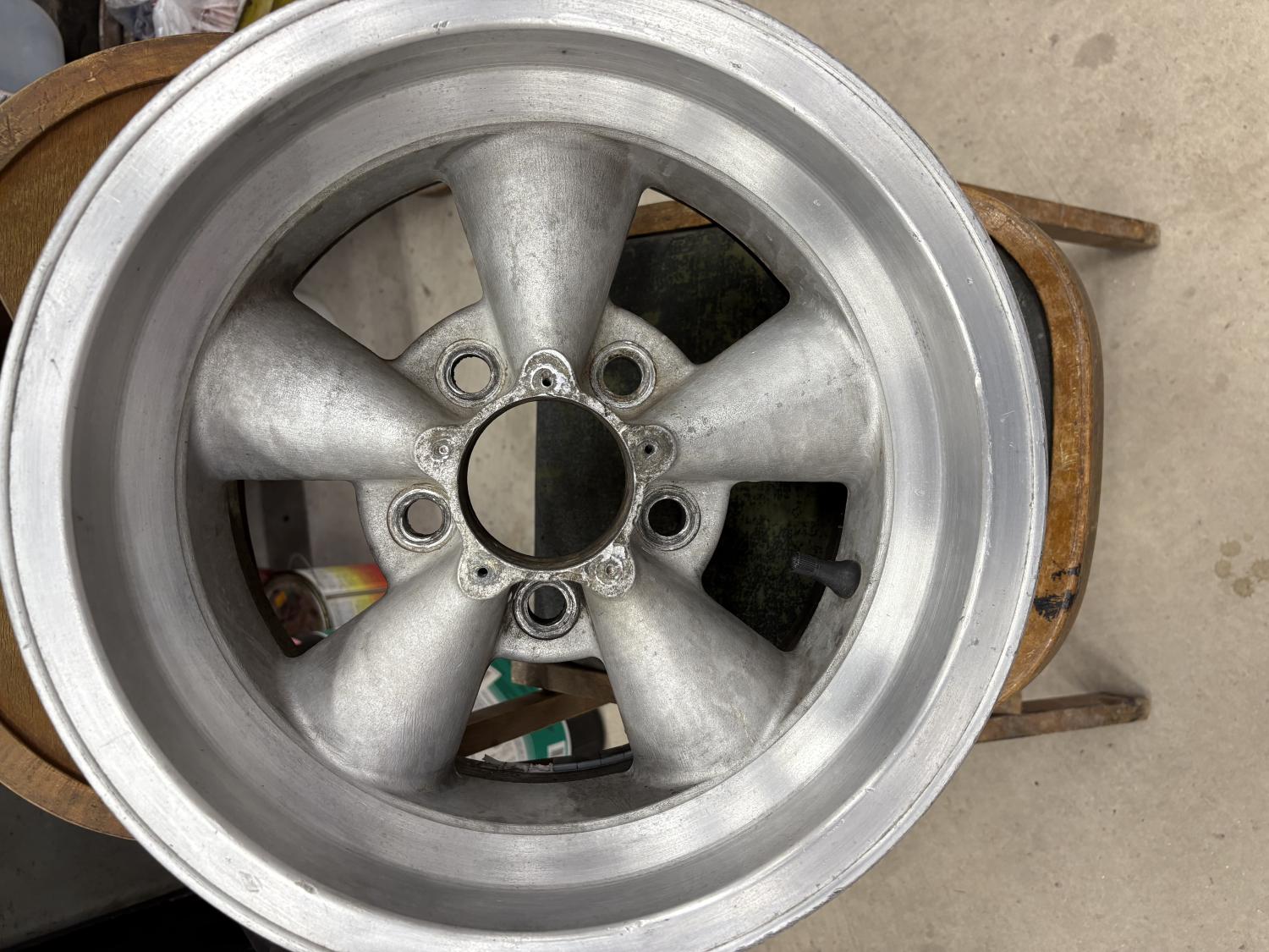 Genuine American Racing 14 x 7 wheel. ˝ inch positive offset with ROUND spokes. THIS IS A VERY EARLY RARE WHEEL. They started the “peaked” spoke wheel in 1965. 100% straight and true. It balanced just fine with a new tire on it. I only have the one. My other five are the later peak spoke wheels. Although I prefer the round, I have given up on finding three or four more. I only have the one wheel. All of mine are raised edge spokes. This one also has two broken screws in it where the center cap attaches, so you will have to deal with that. Or just use as is. Guaranteed to be straight and true. HAVE IT LISTED ON FB FOR $50, BUT FREE TO A PAID MEMBER ON THIS SITE. These are really hard to come by. Fits perfect on a Tri Five Chevy (I took it off my 57). It will fit MANY other Chevy cars from the era up to and including first gen Camaros. I do NOT know if it will fit disc brake first gens. My GUESS is “no”. Pay actual shipping, or I can deliver to MCACN. FREE. No, you can't talk me down on the price. That's as good as it gets.