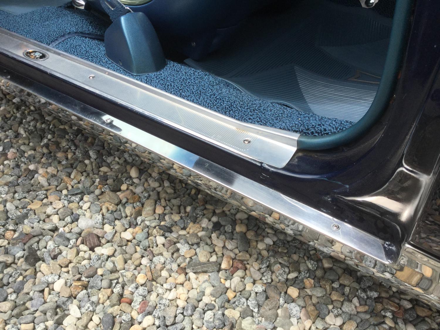 Huh, this car has the very early design stainless rocker panel moulding without the lip screwed to the door sill ….. as it should have.