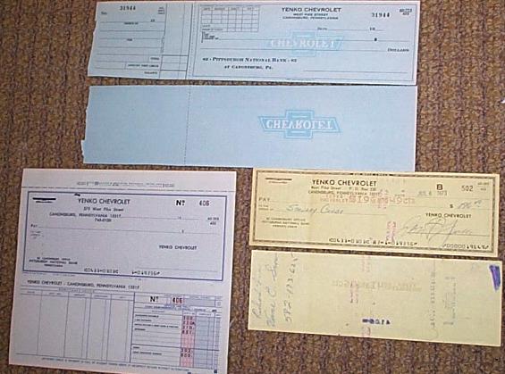 Original Yenko Chevrolet Canonsburg Pennsylvania checks from the Don Yenko estate. Not a reprint.