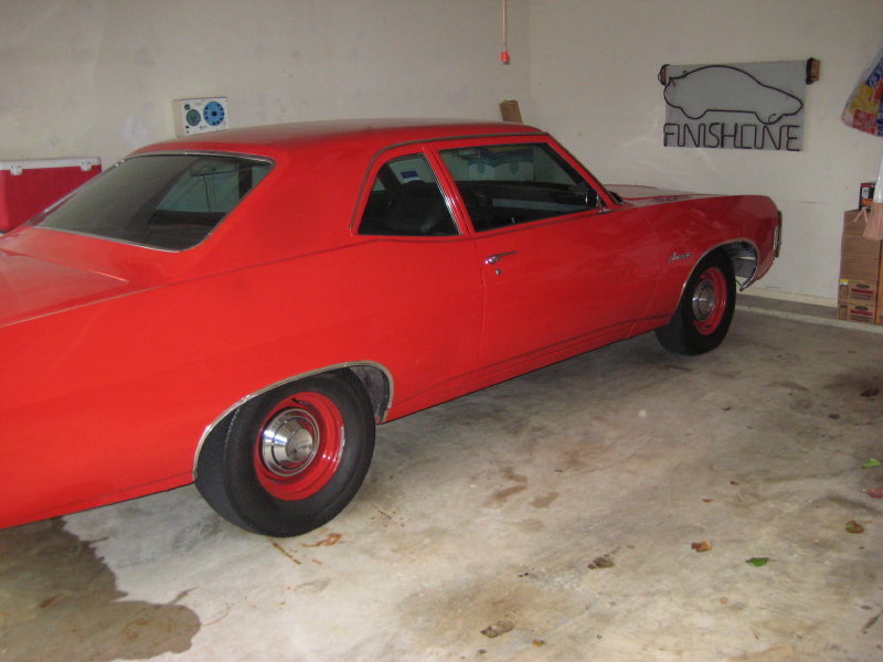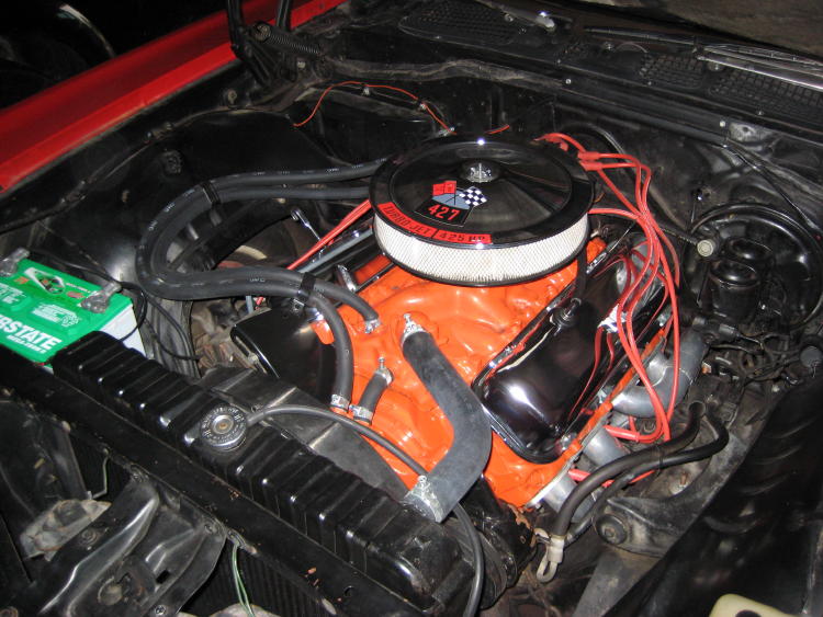 Here are some pictures of the car guys. It will be tomorrow before I can get under it and take pictures of the shifter. I posted on the site a while back looking for information on the car. It was raced it's whole life through the seventies in New York at Lancaster Dragway. Maroon origianly with Gold Leaf Bisquik down the sides. Motor was long gone in the seventies. Getting ready to do a frame off and builing the correct L72 for it right now. Still need a Feb- 1st week of April 3933163 intake and 4346 carb.