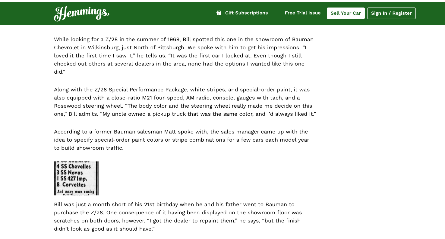 Dedicated to the Promotion and Preservation of American Muscle Cars, Dealer built Supercars and COPO cars. |