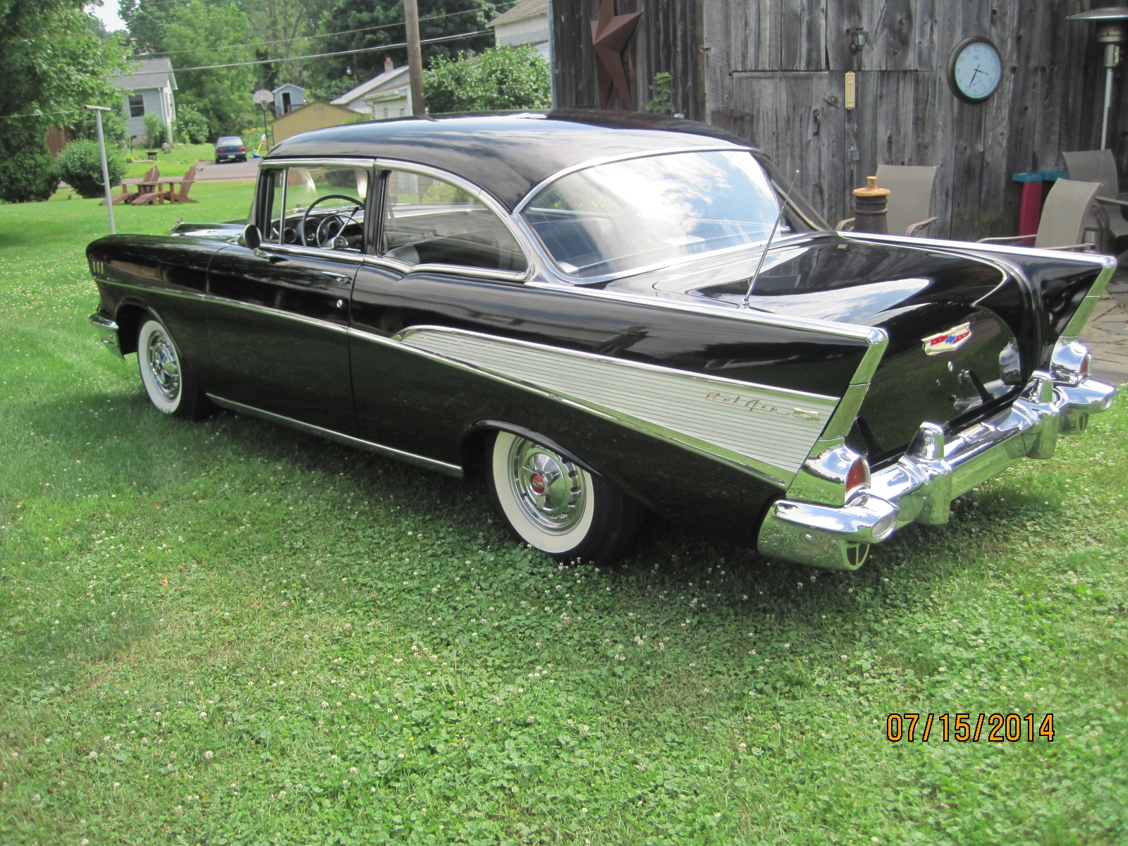 Here is a barn find 57 belair post car 6 cyl auto that has been cleaned up after being stored for the last 30 yrs,we just did the brakes,fuel tank,etc to get it running and driving again.It was a amateur resto but its a all orig car that looks and runs great..asking $29,500.. thanks .570-854-0896