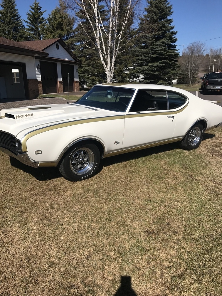 For Sale 1969 Hurst Olds 14,000 miles ,original tires , shocks,plug wires ect.. 75 percent original paint.Purchased from the original owner in December 2015.No a/c .All parts original to the car.Zero mods ever.Every number matches on all parts. All paper work from day one. excellent condition.Call 9063371025 cell 9063373928 shop email [email protected] thanks John $86500.00 will text pictures or email