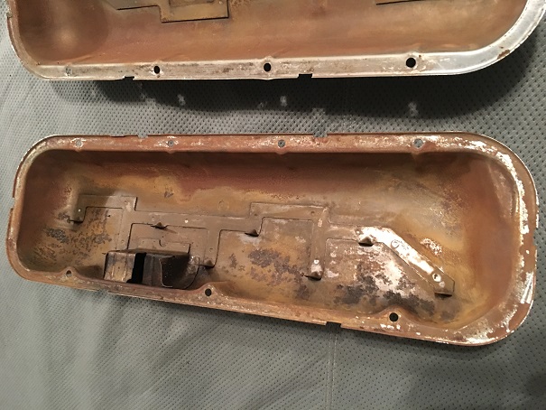 These are what I believe to be correct for 1970-74 big block cars. Has the correct indention on the drivers cover and the correct clips on the pass side. These would be great for that survivor that had its covers swapped at some point or have them rechromed for that restoration. $175 shipped.