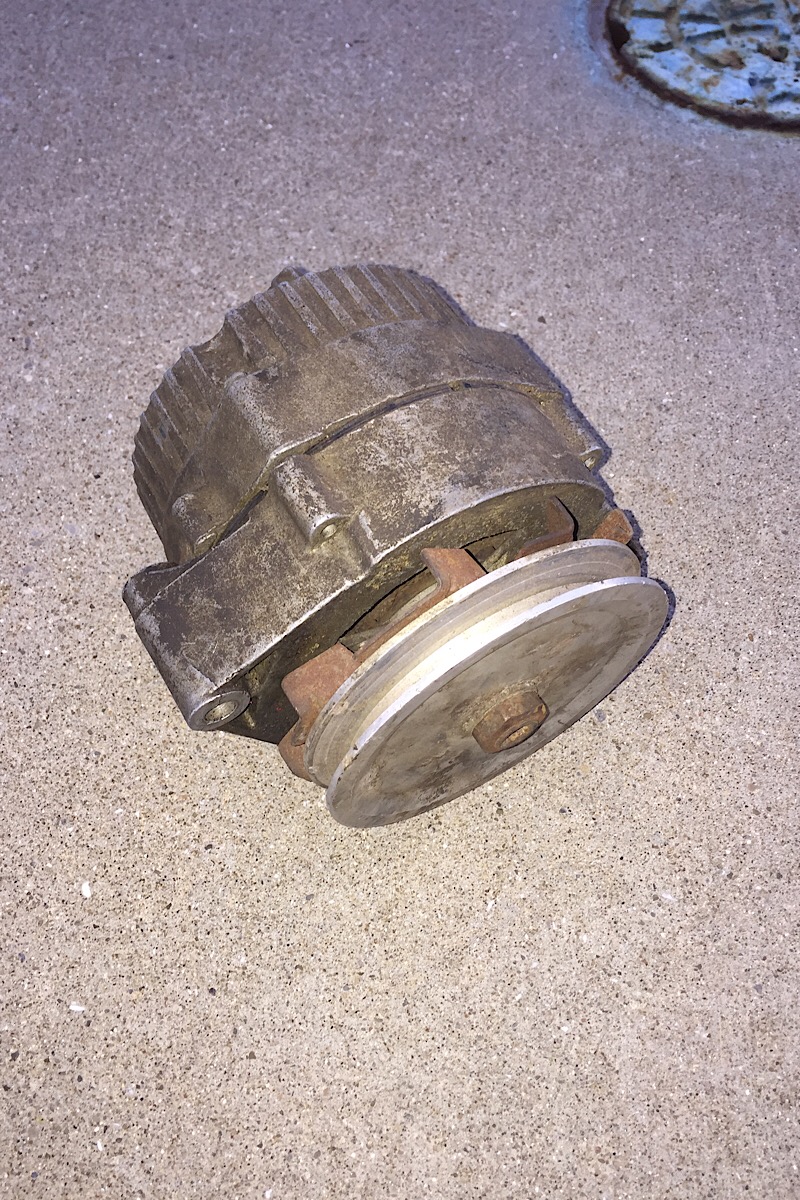 Nice alternator core, someone put the big pulley on it. Needs to be rebuilt but still spins. $100