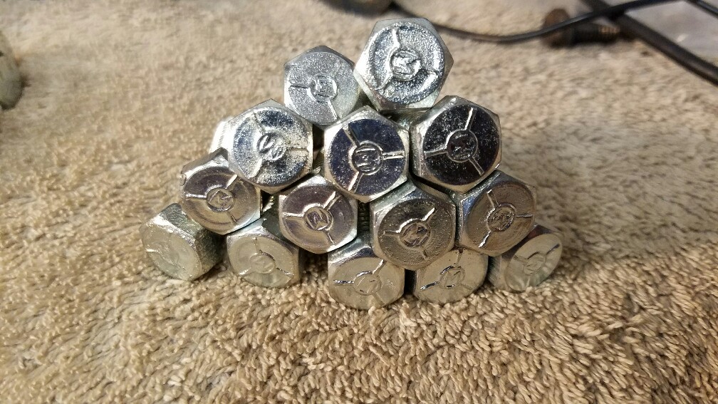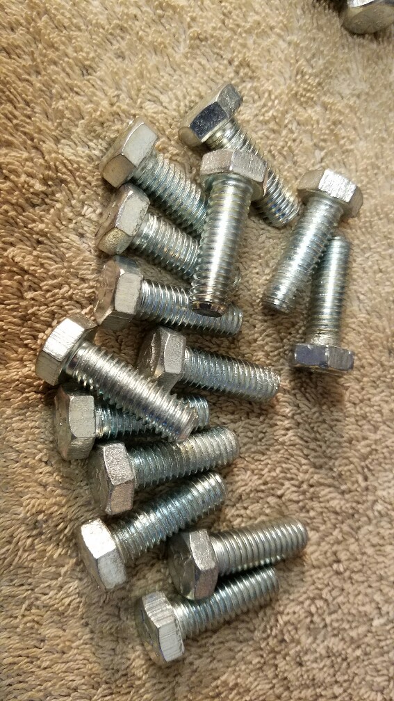 Three sets of restored small block intake manifold bolts CAD plated correct for all small blocks Z28 LT1 L48 l79. First kit m in a circle 14 bolts. $95 shipped to the lower 48 second set RSC head marking 14 bolts. $95 shipped to the lower 48. Third set 68 through 72 CH head marking 12 bolts two CP flanged head bolts 4 engine lift brackets. $110 shipped to the lower 48
