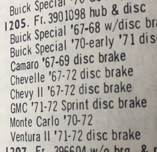 I have a pair of nice 69 Camaro Front Disc brake rotors w/hubs, they have the original grease caps and still have the old bearings in them.