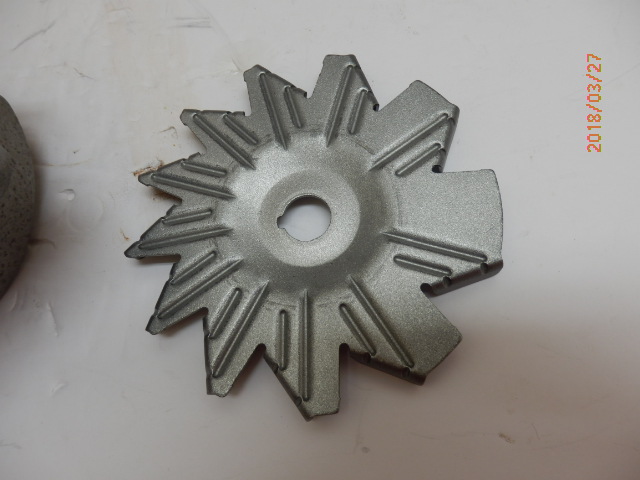 Also, the ford fan has 10 blades and the GM has 11 The grey is the Ford and the silver color fan is the Delco GM fan. The Ford fan will sometimes hit the top adjustment bracket because it is slightly larger. Who ever buys this alternator, I would be happy to donate a correct fan. Jim Last edited by McCune; 03-22-2018 at 02:32 AM. |