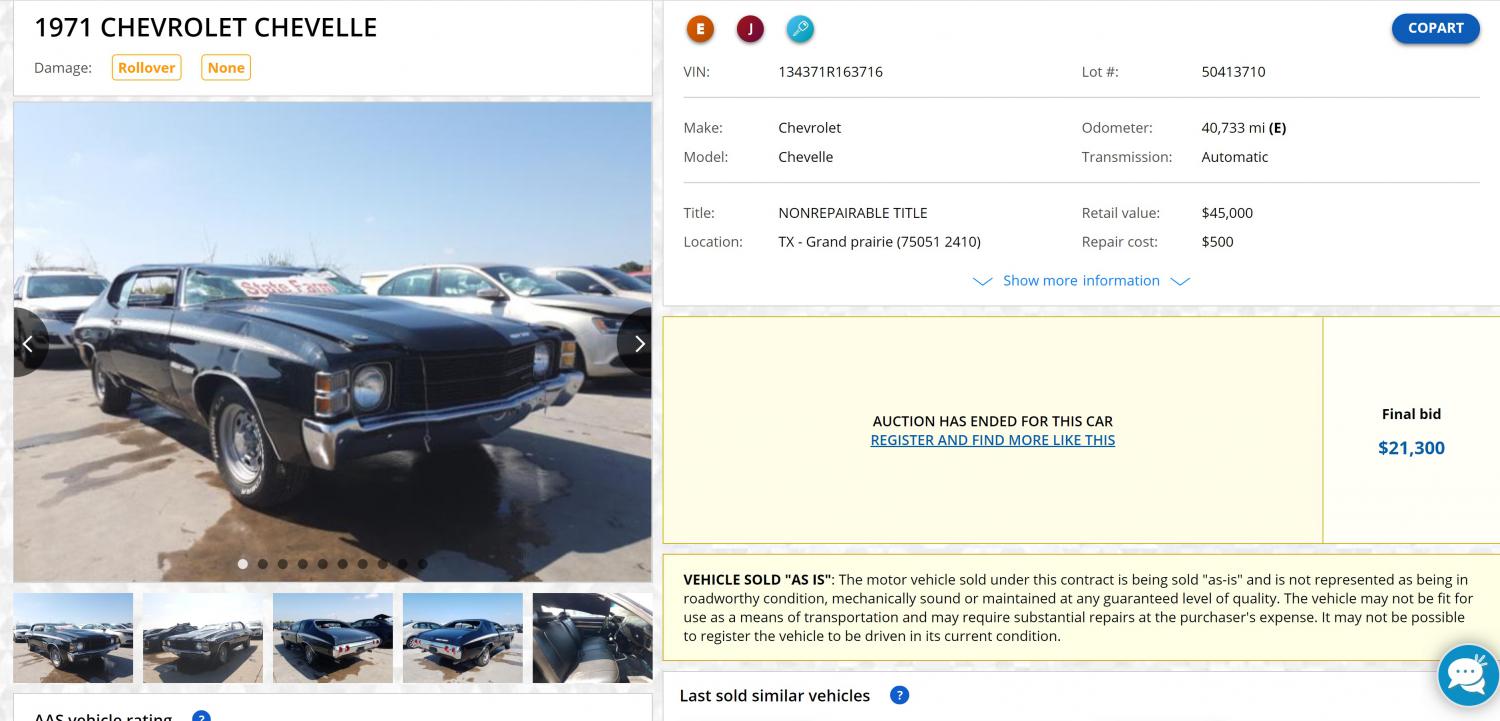 Subject VIN 134371R163716 All that and it's a Stick car too! On eBoy a couple weeks back... https://www.ebay.com/itm/1971-Chevro....m43663.l10137 ![]() ~ Pete .