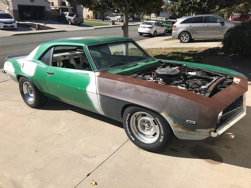 Listing for a friend. Contact me and I'll put you in touch with him. 1969 Camaro V8 coupe. Factory Rally green on White/Black interior car. Beautiful combo. Early Los Angeles car, Black Plate, Replacement POP. From San Diego area. Seller stated 383 stroker engine, runs, turbo 350 auto, 10 bolt rear. Very dry Calif car. Partially disassembled, comes with a ton of reproduction parts to put back together. $19,900 obo Call me at 714 925 04 seven three.