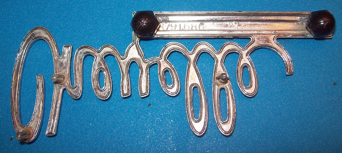 A very nice used in excellent shape assembly line 1970 Chevelle Trunk Lid Emblem 8791686 "Born With". Comes with NOS PAL Acorn Nuts. Perfect for a survivor.