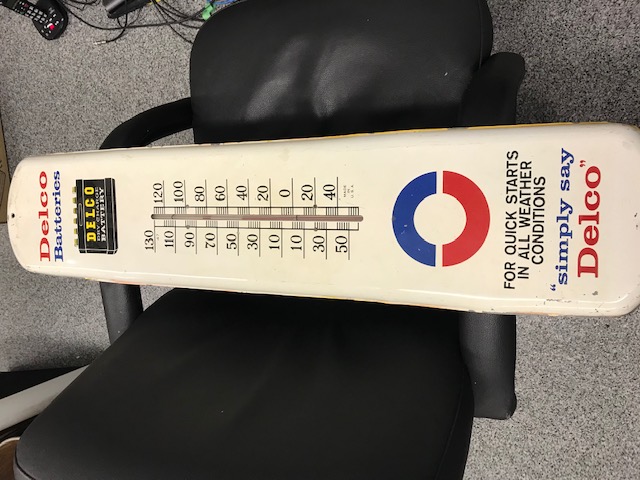 Original Delco Batteries Thermometer sign, works fine.