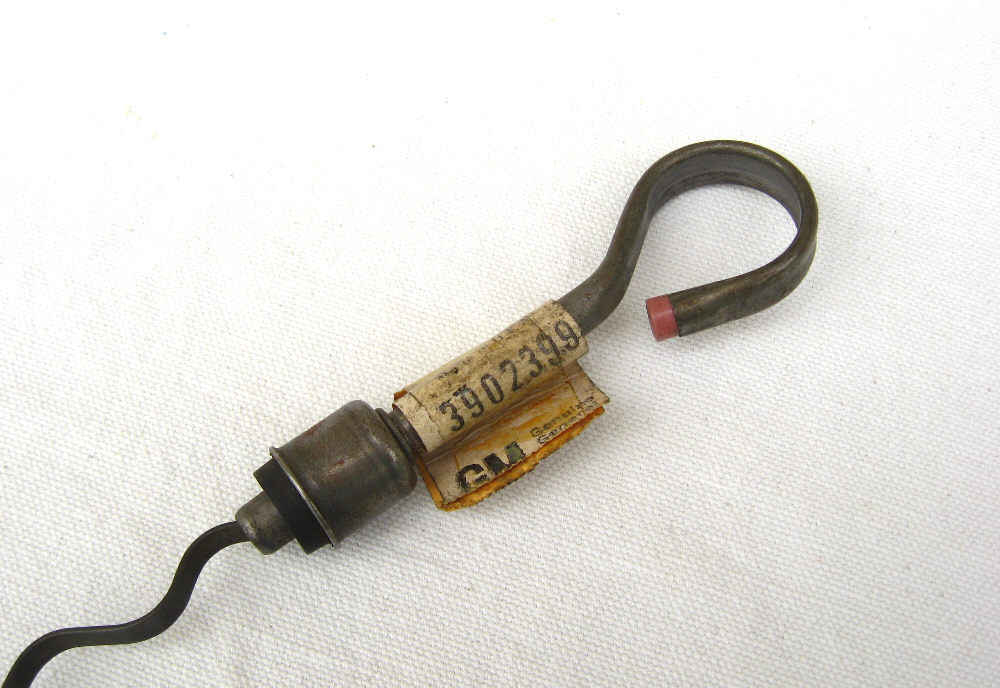 NOS GM engine dipstick. This is the real deal and vintage NOS. Made by GM 50+ years ago. Comes with the correct flat rolled handle with Salmon or Pink tip. May fit also Corvette 427 or Chevelle 396. You be the judge.
