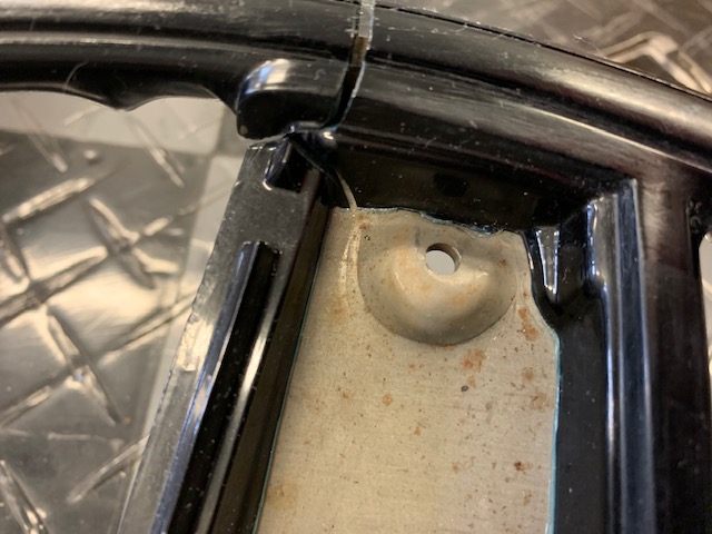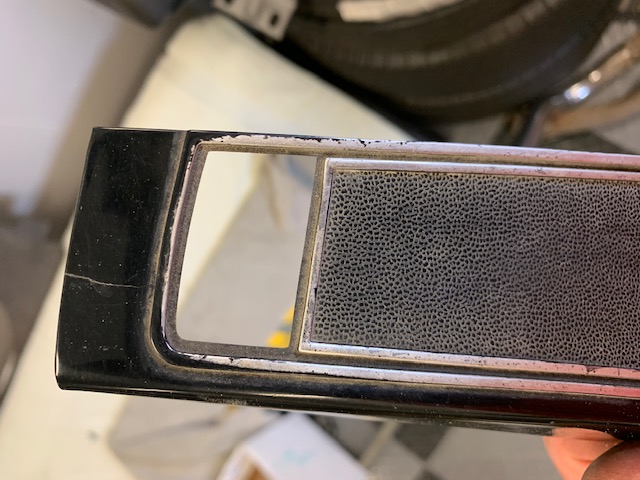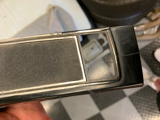 Find a replacement center molding or repair and use a MOLOTOW pen (Hobby Lobby) to fix the simulated chrome.
