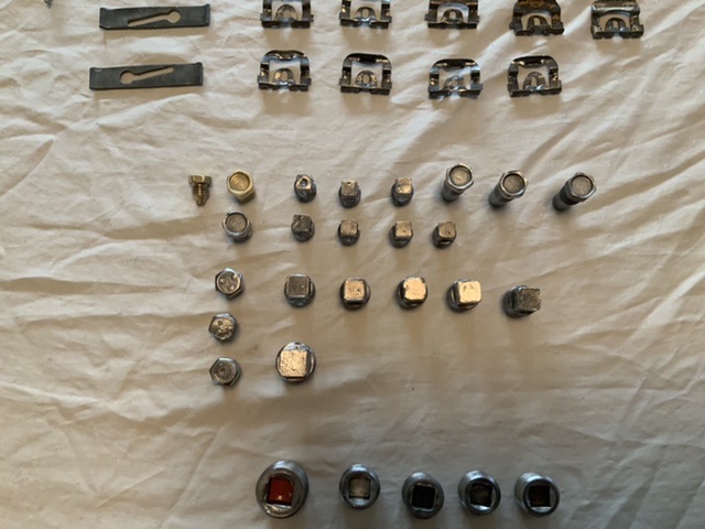 If you don't see it listed below with a price, I have already sold it. Hello All I got some more goodies for sale. Left of the blue pen: . Voltage regulator screws- flat bottom with raised dimple In the top of the head. These are not being reproduced w/ this head marking. $10. for the set of three . Brake pedal clevis pins with pal retainers (2) one has RBW head marking, the other one has a circle with L in the middle of it. $10. Ea. . Firewall wiring block bolt. No head markings.$5. . Small block distributor hold down w/ bolt. Wire style. $10. . (3) Water temp sending units AC round 1) round pin style with upside down wording, no part number. 2) Flat blade part number 258 M date code of 266. 3) Round flat (non-gauge) style. $15 Ea. . (2) Steering column bolts w/correct raised dot lock nuts. 1) Column to intermediate shaft head marking is 6 lines w/ circle and an F in the middle of it. 2. Intermediate shaft to steering box coupler w/ TN head marking $10. Ea . (7) Windshield defogger duct short screws with captive washers. very difficult to find. $10.for all 7. . Small Block Chevy water pump nipple, super nice $25. Right side of the blue pen: . Early weather head oil jacket block plug- very nice. 7/16ths. $25. . (6) Small block raised dimple oil jacket plugs- front of block, nice. 5/16ths square head. $15. Ea. Sold (2) I actually have 5 left (found one more in my stuff) . (1) Small block depressed dimple oil jacket plug- Front of block, nice. 5/16ths square head. $15. . (3) Small block late model oil jacket plugs. 7/16ths head.$5.Ea . (2) RBW small block? Water jacket plugs.one is nice, the other one is a little eaten up on the bottom, but still very usable. 7/16ths square head $10.1) Small block? Water jacket plug w/ L and a line next to it. 7/16ths square head. Nice $15 . (5) Small block water jacket plugs, nice. 7/16ths square head. Nice $15. Ea . (1) Small block water jacket plug. 9/16ths square head. Nice. $15. . (1) 1/2 intake plug-hard to find. Some pitting on the bottom, but rest of it is super nice. $30. The other plugs various oil galley plugs, not sure what the sizes are. they look to be 3/8 and 1/4 NP $5.Ea or would do a package deal. All pieces shown are in nice to extremely nice condition and have been stripped and are in unrestored condition. Some of the photos don’t do these parts justice, if You would like better photos, please email me with a cell phone and which item(s) you are interested in and I can text or email you better photos. I would prefer to ship each item in a USPS legal letter size priority mail bubble wrap envelope at $8.75. I can ship in smaller envelopes, but I won’t know the actual shipping cost until I get the ZIP Code . In most cases it’s actually cheaper to send USPS flat rate. I will ship elsewhere (other countries)for actual shipping costs. I'm more than willing to combine shipping on multiple items, so please buy more than one item to make the shipping even more affordable for you. For example if you were to purchase say have of what is shown and if I can get all of it into one legal letter size USPS priority mail bubble wrap envelope your shipping would still be $8.75. Payment to be through PayPal via friends and family so that I’m not dinged on fees.