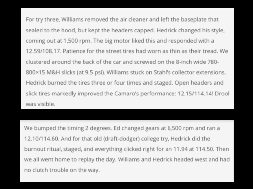 A few great past threads here w/ Hedrick's test car, here's one... https://www.yenko.net/forum/showthread.php?t=154142 ![]() ~ Pete .