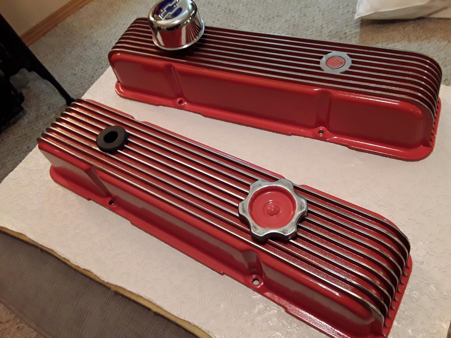 Real nice set of 9 fin Cal Custom small block Chev valve covers.Fins were polished,then covers were thoroughly cleaned and sprayed with high temp Chevy orange paint and then hit with high temp clear.No chips or nicks on the fins or cracks on the covers.Covers look a little red in pics but are definitely Chev orange in person!Made in Gardena,California.Asking $260.00 shipping included to Canada and lower 48 States.Will be insured and have a tracking number.Paypal f&f preferred.Thanks,Bill. PM me or email [email protected].