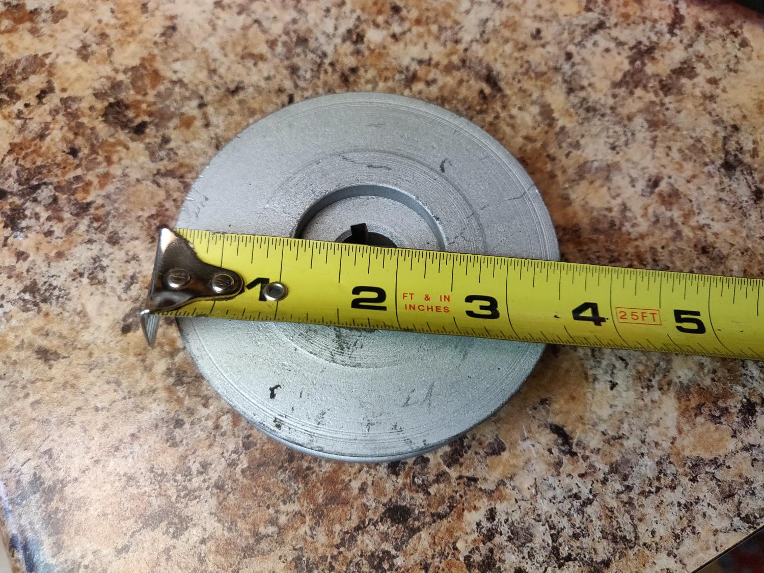 https://www.heartbeatcitycamaro.com/...GM%23-3829287/ The later 68-72 pulley I believe is 3.2" in diameter with no keyway slot. I think someone machined the face to remove the numbers.