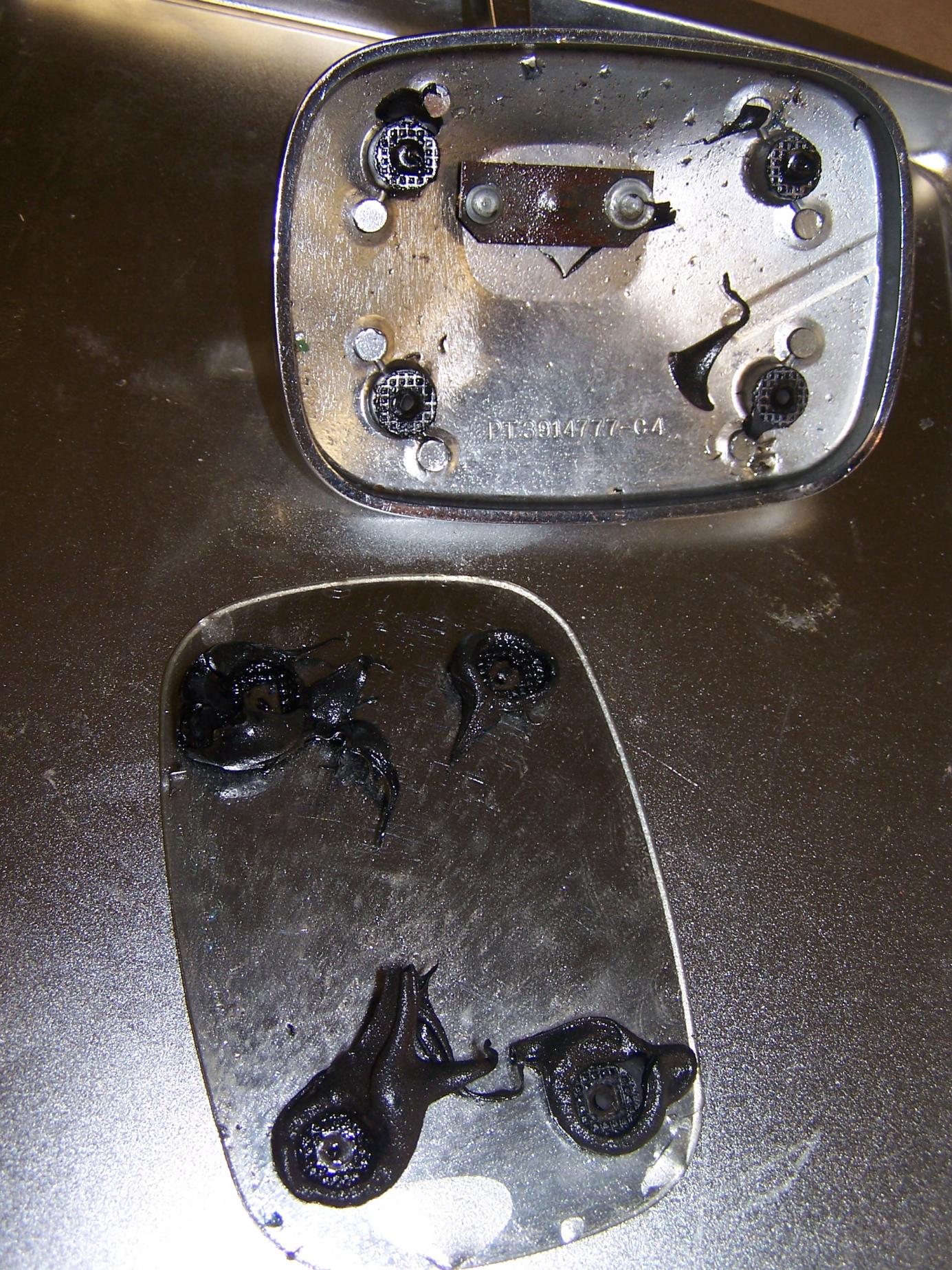 Jeff, I have done it by holding the mirror in a vise so the glass is facing up. Fill up the mirror head with lacquer thinner and let it sit for a day (the thinner should loosen up the adhesive). Gently pry the glass loose (I have also assisted this process using a heat gun on the backside of the mirror). You can also buy dated glass for the mirror from Paragon.