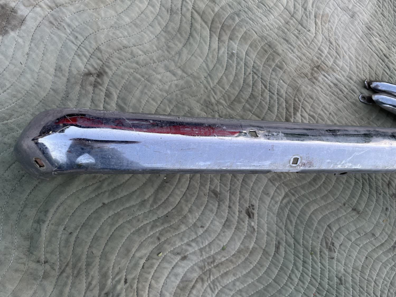 Hi Gang, this has been bouncing around here too long - it's a genuine GM bumper core - great for rechroming but passable for a driver IMHO. Comes with the two original bumperettes - one has a slight tweak at the attachment tab and a couple marks on them from parking lots - but certainly repairable.